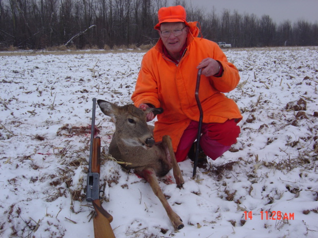 | The file attached is a great shot of 75 year old "Oly" posing with his first deer in a number of years. We helped to kick it out of a small wood patch and finished it off in the plowed field. It was really special to see this veteran hunter, cane in hand, come hobbling through the turned cornstalks to gaze on his prize. Congratulations Oly, Great Job! Edited by Rick Larson 12/14/2003 7:29 PM Attachments ---------------- MyronOlson.jpg (151KB - 128 downloads) | |||