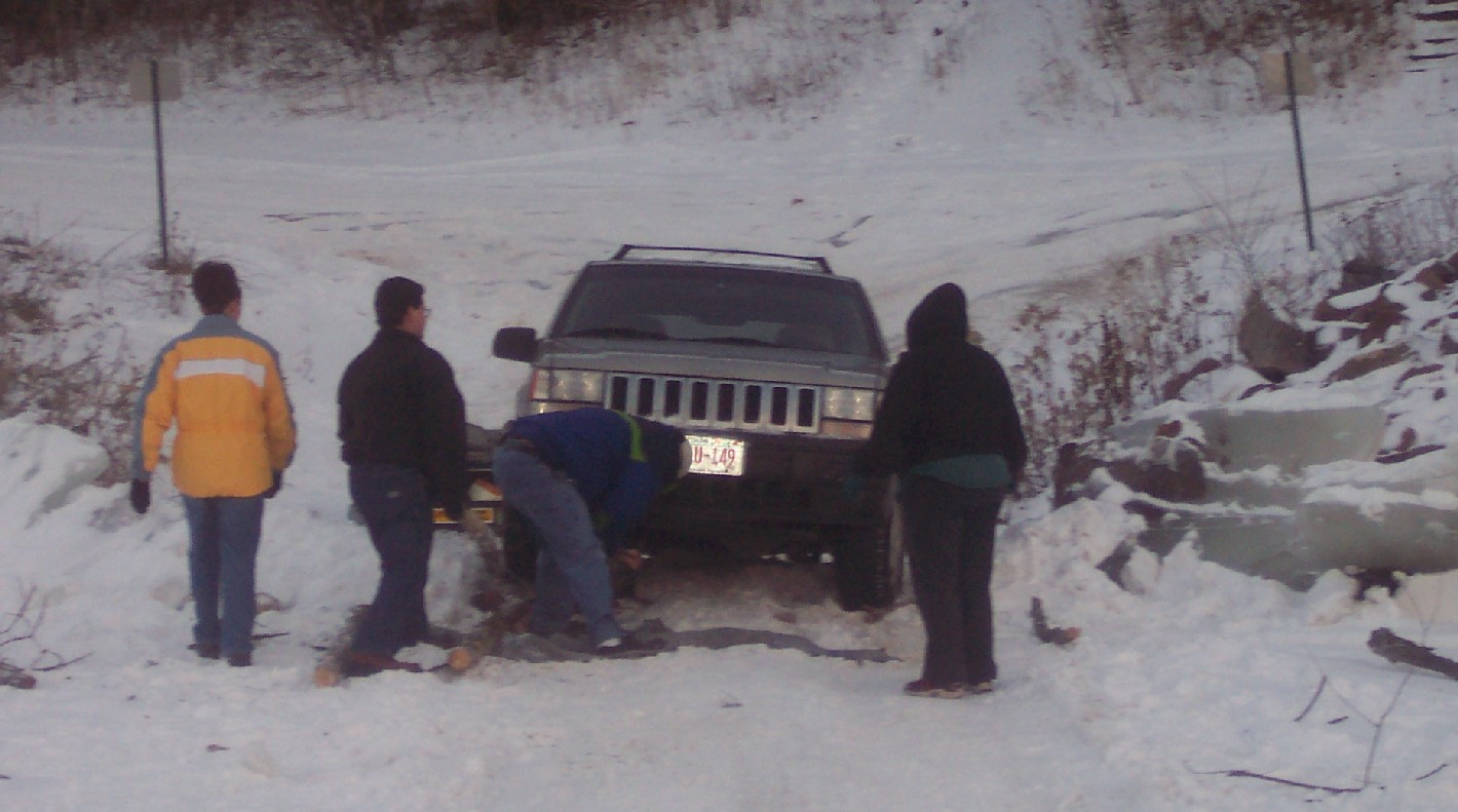 Here is the pic of the people that were hung up at the access at Monroe Park. We tried to help them out, but it was just hung up too far back on the frame, and the front tires were over the edge of the heave.