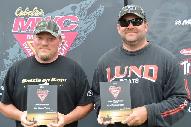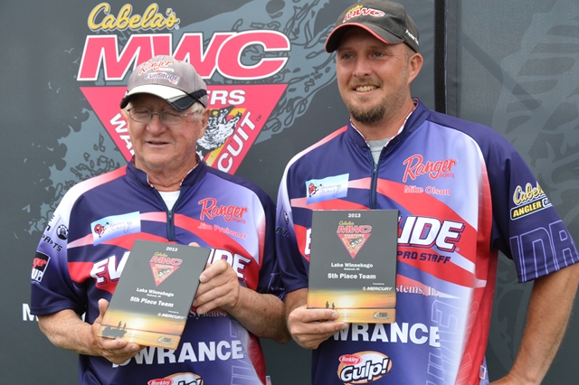 Location: Rhinelander | Jim Hughes and Matt Jacobson took it wire to wire for the win with 40-06 fishing the river pulling Berkley Flicker Shads and Rapala Shad Raps. Jim explained on stage the stayed on the fish a ground it out, losing about 35 crankbaits to snags in the process. It wasn't worth the time to go back and try to get the lure off the snag, so they broke off, retied, and kept moving. The winning check, said Jim Hughes onstage, was probablt enough so he could go buy some new Rapalas and Flicker Shads at $15,100.00 plus contingencies. MWC Leaderboard