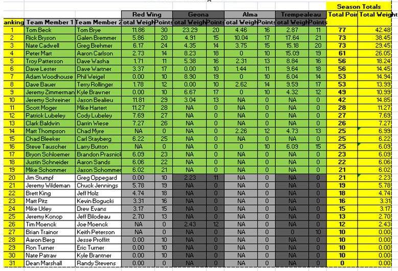 | Jump to page : 1 Now viewing page 1 [25 messages per page] Walleye Fishing -> Walleye Tournament Information and Reports -> MMWS Trempealeau- Team Bryson / Bremmer Win with 17.64#s! |