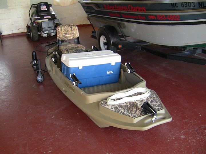 ![]() Member Posts: 2680 Location: Essexville, MI./Saginaw Bay. | The new trend these days seem to be Kayak fishing. A friend of mine has got me into 2 of his Kayaks over the last year but/and I felt like it was going to tip over from start to finish. There are many River and Bay Salmon, Walleye and Bass fishing oportunities to be taken advantage of in Michigan while using these small and light crafts, but being a LARGE MAN makes most of them top heavy and similar to the first time on ice skates for me. I remembered a few years back owing an Otter Stealth 1200 Duck Boat. Kinda like a much more stable Kayak on steroids, that held more dead weight without ever being the least bit tippy. I sold the 1200 a few years back when I quit Duck Hunting, but after 1 trip last November on Platt Bay with my bud Kayak fishing for Coho's, I had to get another in the bigger Otter Stealth 2000 version. I have a few more things to customize on this Fat Mans Kayak and she'll be ready. First picture is my old 1200. Other ones are the 2000 that I'm rigging for fishing. Edited by walleye express 8/16/2013 4:39 PM Attachments ---------------- Image01_sized.jpg (94KB - 352 downloads) Otter Boat 003.JPG (114KB - 347 downloads) Otter Boat 004.JPG (116KB - 312 downloads) Otter Boat 008.JPG (108KB - 865 downloads) Otter Boat 006.JPG (101KB - 889 downloads) Otter Boat 005.JPG (117KB - 610 downloads) | ||