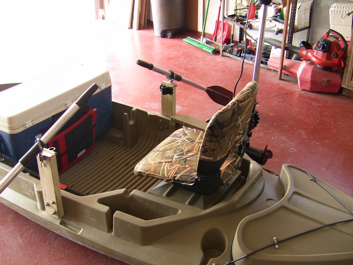 Member Posts: 1314 Location: Menasha, WI | I've taken up kayak fishing this summer and I am hooked. I have a super basic set-up right now but plan to do a full conversion in the near future. That's a nice set up, Dan. The one problem I foresee is your rod holders and oar locks being on the same riser; you won't be able to row with lines in the water. | ||