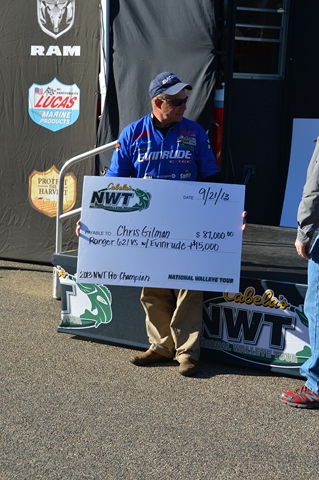 Location: Rhinelander | Chris Gilman won it. The first National Walleye Tour Campionship is in the books, and Gilman is the Champion for a payday of over $87,000.00 including cash, a new Ranger/Evinrude package, and contingencies.