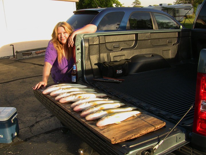 Girlfriend and I went 10 for 13 today on walleyes on the Saginaw River. Caught only 4 in the first 2 hours along with 6 giant cats pumping lead core till our arms gave out, then switched over to 2 ounce snap weights 4 feet in front of #5 shad Raps. The Cats almost made me quit fishing, but they actually helped me figure out the speed, the where and the how the walleye wanted it. That last 2 hours was on fire and made it all well worth the effort.
