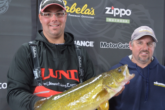 Location: Rhinelander | Skarlis and Lahr lead with 19.07, on what was supposed to be a tough bite for them. Tommy and Jeff adjusted nicely and brought the leading bag to the scales. The number of limits wasn't large as predicted, but there obviously were good fish to be caught. Tony Kobriger and Dan Zwick are in second with 18.01. Third is held by Olivier and Galant with 16.15. Fourth are Dahl and Stack with 16.10, and rounding out the top 5 are Doyon and LaFramboise with 15.09. Attachments ---------------- DSC_0007 (Copy).JPG (228KB - 182 downloads) DSC_0102 (Copy).JPG (260KB - 178 downloads) DSC_0078 (Copy).JPG (282KB - 179 downloads) DSC_0057 (Copy).JPG (247KB - 182 downloads) DSC_0038 (Copy).JPG (272KB - 183 downloads) DSC_0125 (Copy).JPG (277KB - 181 downloads) | ||