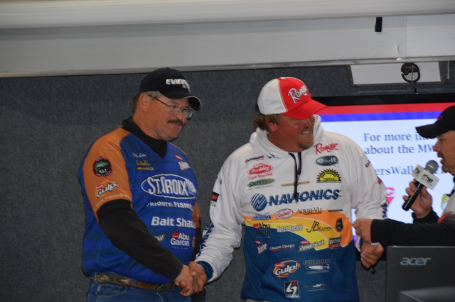 Location: Rhinelander | It took two good days to make the top 4 today, but 5th and 6th were another story. Kobriger and Zwick had 1801 yesterday, and 17-11 today to take the lead with 35-12...and were short a fish both days. Stack and Dahl had 16 and change both days to take over second just 3 pounds back. Lantzy and Vandemark took over third on the virtue of 4 really big fish, weighing in a 9 and a 7 today and close to that yesterday. Van Dyke and Carlson popped 18 plus today to move into 4th, and Skarlis and Lahr hold 5th slipping back due to today's weight of 6-10, but are 'loaded for bear' tomorrow. Team of the year Sprengel and Navis made a dramatic move with the biggest basket of the tournament at 21-04 climbing all the way from 27th to 6th. It's going to be a shootout tomorrow. Winds look OK at NW up to 9, and skies will be cloudy with a few showers which should help the bite. Attachments ---------------- DSC_0105 (Copy).JPG (284KB - 172 downloads) DSC_0020 (Copy).JPG (247KB - 179 downloads) DSC_0124 (Copy).JPG (275KB - 170 downloads) DSC_0089 (Copy).JPG (266KB - 185 downloads) DSC_0042 (Copy).JPG (280KB - 174 downloads) DSC_0072 (Copy).JPG (248KB - 186 downloads) | ||