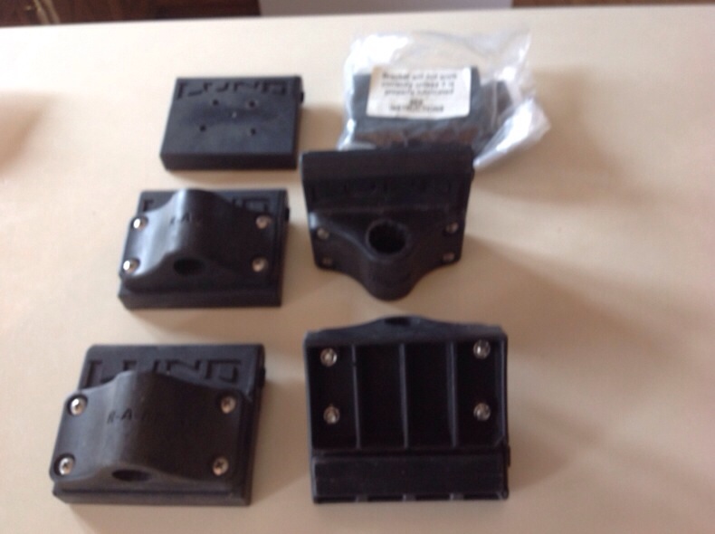 4 Lund Sport track brackets with Ram rod holder bases, $20 ea.