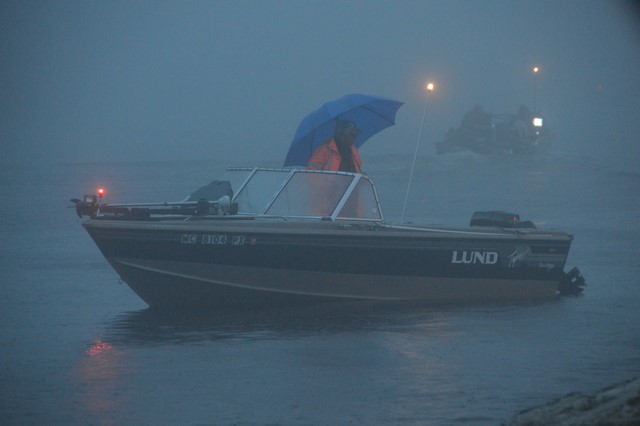 Location: Rhinelander | The pros and co anglers sat in a soaking downpour this morning during a half hour plus fog delay. When the fog lifted, the rain continued until about 8:30. it's still 'misty' out there.