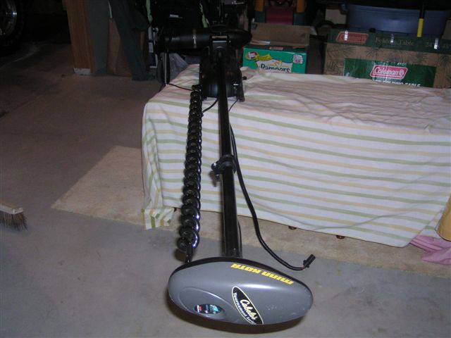 Member Posts: 86 Location: Fond du Lac, WI | Zamer, Here's the pictures of the trolling motor. It's a model 60PD (24 volt, 60 lbs. of thrust, 60" composite shaft) and has the built in Maximizer, Grip-Glide Mount, Micro-Touch Foot Pedal and Weedless Wedge prop. Not sure how long the cord is as the foot control is still in the boat in storage, but I think the cord is 18' if I remember correctly. Drop me an email if you're interested. Dave. Edited by DaCoder 2/17/2004 9:04 PM Attachments ---------------- P2170037.JPG (42KB - 150 downloads) P2170038.JPG (44KB - 148 downloads) P2170041.JPG (40KB - 133 downloads) | ||