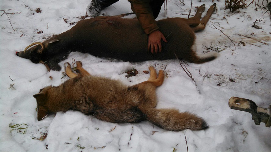 8 point, 7 point, 6 point, spike, huge Doe and a Coyote.