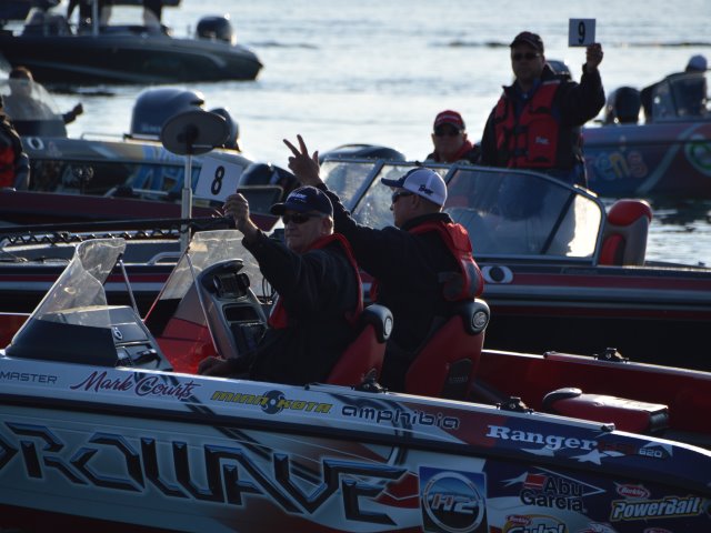 One hundred and twenty five pros met up with there co-anglers this morning at the Walker town park boat landing. The teams headed out with almost zero wind and had blue bird skies to start the day off with. Temps should reach the upper 70's by the afternoon. Most of the teams we talked with this morning will be fishing with live bait.