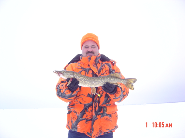 | Yep, the fishing has slowed considerably for walleyes for me and those I spoke with fishing LBDN this past weekend. The theme was consistant in that everyone believe the brutally cold weather has effected the walleye's hunger. Pete Huibregtse and I fished first out front of the McDonalds in the outer bay, catching one small 'eye, and having one tip-up with - but all that happened was to pull in a scaled shiner minnow. Then we fished in the mud out front of the Vagabond - nothing. We finished Saturday by fishing the shallows near the Hawg Heaven shanty town. We caught another small 'eye and that's it for the day. Will report the day before the Hawg Heaven clients did catch some northern while we were present, and had a great story about a client catching a 46 inch Northern the night before, on a tip-up from the shanty town spread. They also reported a number of walleye caught along with this northern. Sunday had Pete and I out fishing in the mud out front of the Terrace. One tip-up with no results, and then we managed to salvage the trip with a 26 inch Northern. And I'm eating that sucker! Attachments ---------------- Jake.jpg (145KB - 151 downloads) Mark Serchen.jpg (149KB - 142 downloads) Mr. Lary.jpg (146KB - 142 downloads) 26 inch Northern.jpg (127KB - 139 downloads) | |||