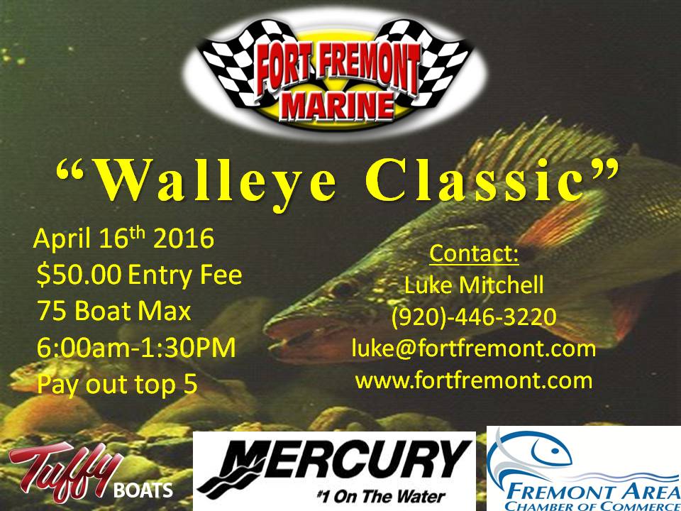 2016 is off to a great start! Fort Fremont Marine is excited to announce the Walleye Classic is back! Saturday April 16th, 2016. 6:00 am-1:30 pm. $50.00 a boat. Please contact Luke at Fort Fremont for details and registration. 920-446-3220 or [email protected]