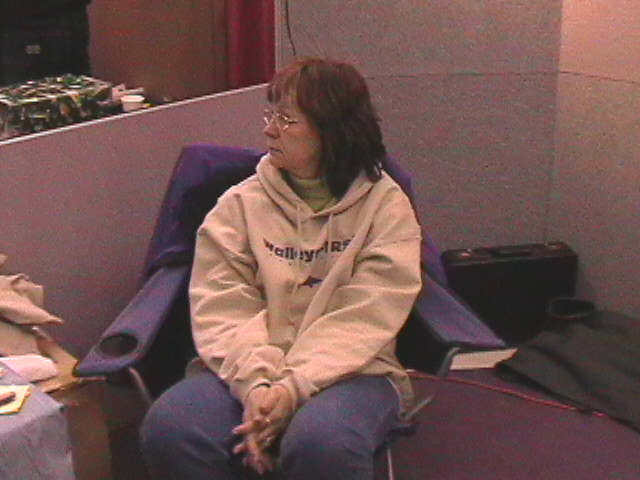 The Patriot Booth, an average show booth aisle, Sue waits in the WalleyeFIRST booth for the show to open.