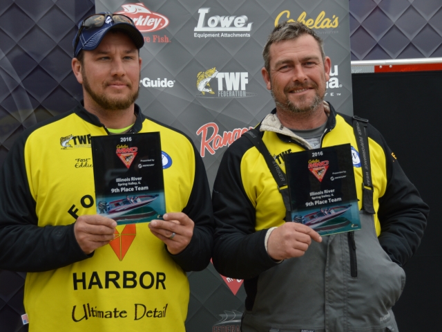 Location: Rhinelander | Joe Perez and Troy Tregoning took the win on the Illinois River! The team brought in two fish weighing 6.11 pounds that gave them a two day total weight of 19.12 lbs. Curtis Oliver and Doug Galant jumped up to second place with a two day total weight of 17.11 lbs and Day one leaders Steve Vandemark and Jerry Fox JR fell to third place with 16lbs. Top 20 1- Joe Perrez & Troy Tregoning 19.12 lbs 2- Curtis Olivier & Doug Galant 17.11 3- Steve Vandemark & Jerry Fox JR 16.0 4- Jerry Eiben Joe Knight 12.07 5- Glenn Daugherity & Kathleen Hohn 12.02 6- Adam Sandor & Steve Sandor 11.04 7- Ron Levin & Nick Ingoglia 10.07 8- Dave Ahmann & Wayne Millman JR 9.03 9- Ed Michniewicz & Jasen Shine 8.01 10- Jeff Lahr & Tommy Skarlis 7.13 11- Wayne Loy & Thomas Deneke 7.06 12- Steve Lotz & Dave Daughenbaugh 7.03 13- Gary Merkel & John Smith 7.03 14- Dan Johnson & Larry Rhoads 6.09 15- Scott Geitgey & Jay Gullet 5.03 16- Mark Michael & Brad Munda 5.0 17- Kevin O' Malley & Rick Parrot 4.14 18- Kevin Dage & Dawn Dage 4.11 19- Bob Horvath & Mike Thomas 2.04 20- Paul Mathews & Ted Mathews 4.02