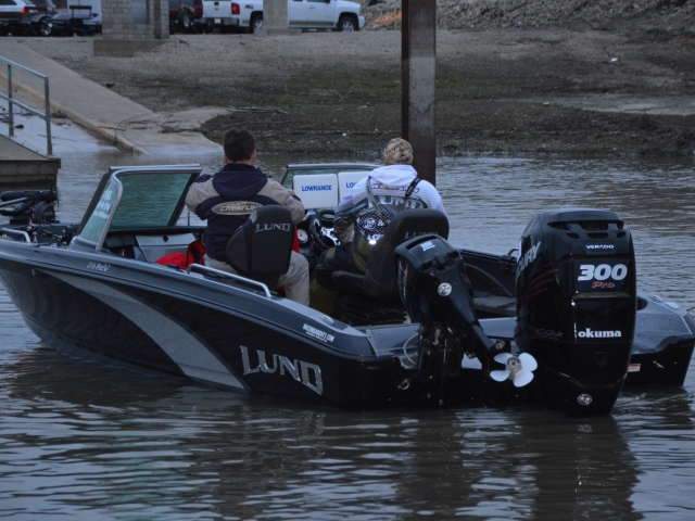 A total of 87 teams headed out this morning out of the Spring Valley Boat Club. The water level has dropped almost a foot over night. As for the weather today the winds are light and temps this morning started out at around 30 degrees and the high for the day will top out around 47 degrees in the afternoon. There is a chance for light rain or snow but not until after 4pm. The first flight is due back in at 4 pm and the weigh in will be held at the Spring Valley Boat Club.