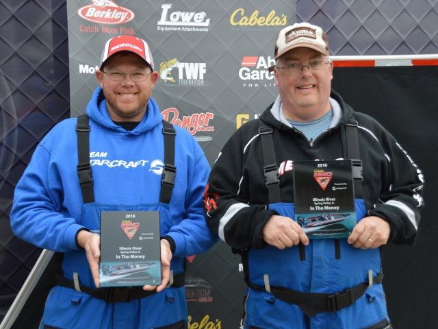 Joe Perez and Troy Tregoning took the win on the Illinois River! The team brought in two fish weighing 6.11 pounds that gave them a two day total weight of 19.12 lbs. Curtis Oliver and Doug Galant jumped up to second place with a two day total weight of 17.11 lbs and Day one leaders Steve Vandemark and Jerry Fox JR fell to third place with 16lbs.