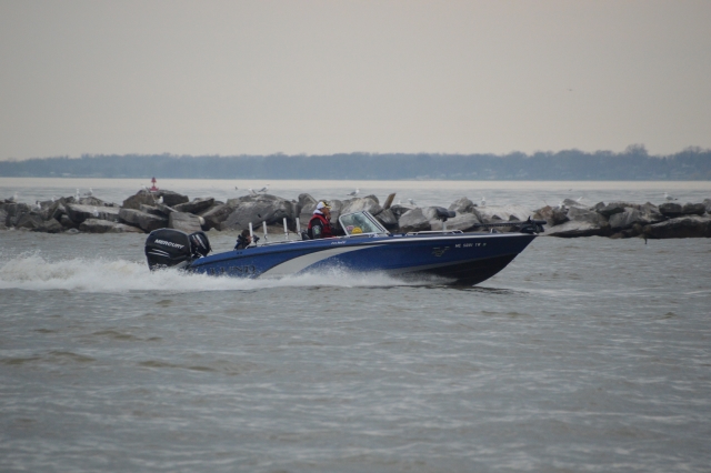 The teams are back at it this morning on Lake Erie! Weather for the day looks to be allot like yesterdays with light winds and rain showers. The first flight of boats is due back at the docks by 3:00 pm. The weigh in will be held at the Shelby Street Public Boat Launch (101 Shelby Street, Sandusky, OH).