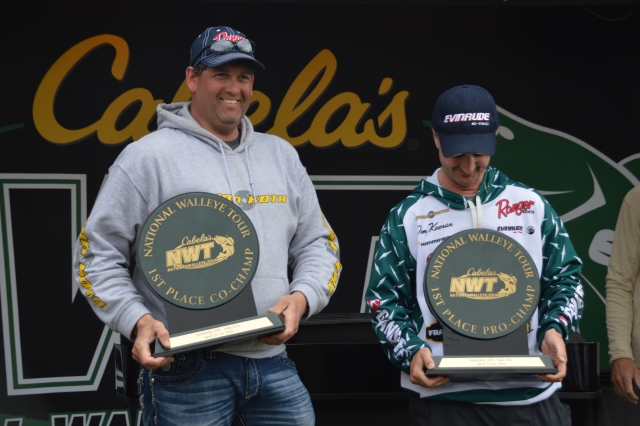 Tom Keenan took the win on day two of the Cabela's National Walleye Tour with 91.46 pounds. Wayne Van Dyke took second with 90.59 pounds and filling the third place spot on the pro angler side is Daniel Bodinger with 88.33 pounds.