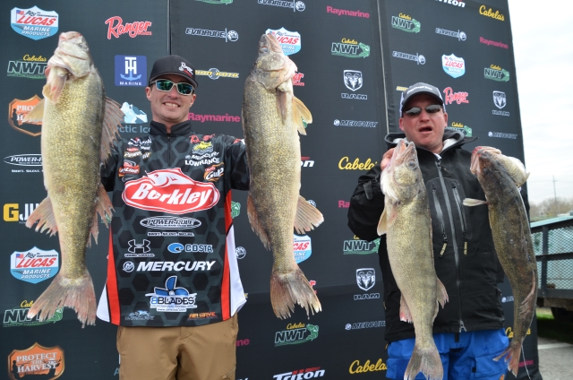 Location: Rhinelander | Mike Defibaugh moved up from 22nd place to take the win at the 2017 Cabela's National Walleye Tour event on Lake Erie. Ryan Buddie held on to second place and Korey Sprengel moved up 22 spots to take third place. Today's bite proved to be a tough one with the high winds and 6 to 8 foot rollers through out the day. 1st- Mike Defibaugh with a two day total weight of 64.65 pounds 2nd- Ryan Buddie 62.61 pounds 3rd- Korey Sprengel 58.63 pounds 4th- Kevin Mcquiod 55.02 pounds 5th- Eric Olson 51.93 pounds
