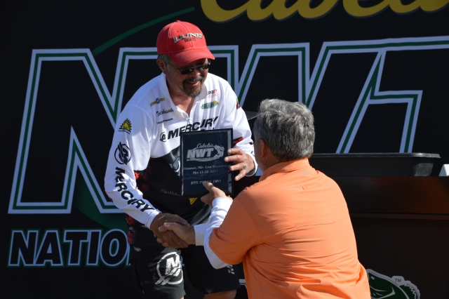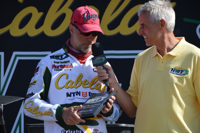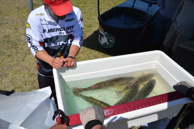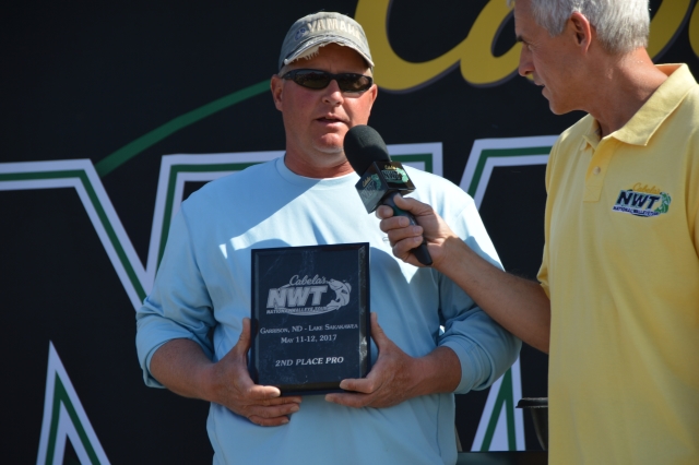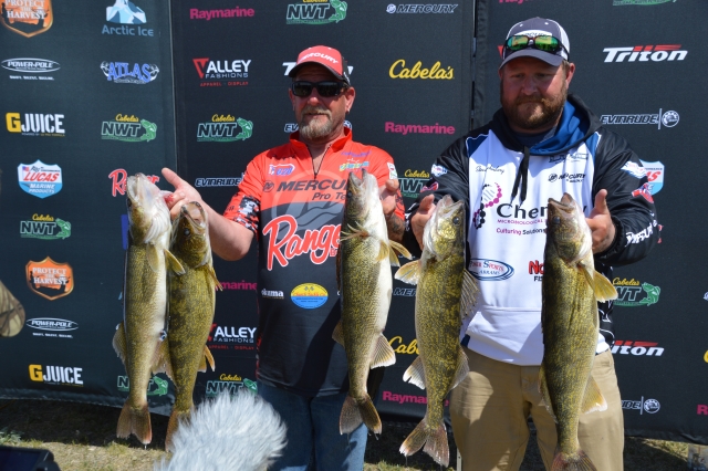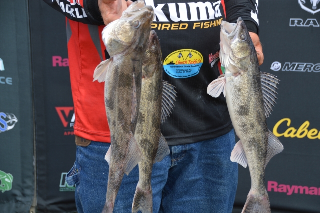 Location: Rhinelander | Pro angler Duane Hjelm brings in another impressive bag on day two to hold onto first place with a two day total weight of just over 45 pounds. Steve Kuchenberg took first place on the Co Angler side.