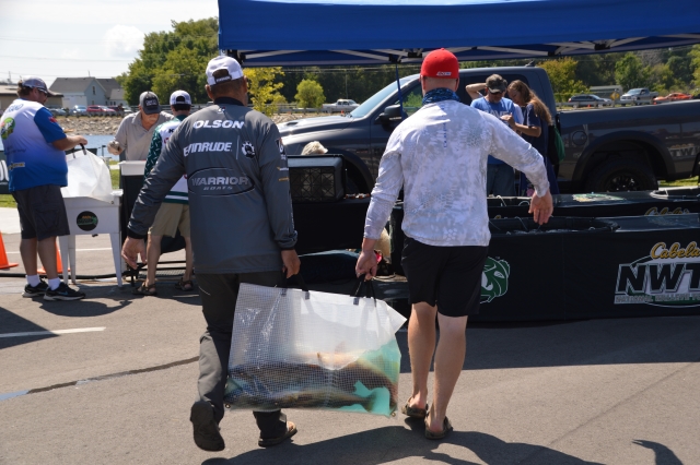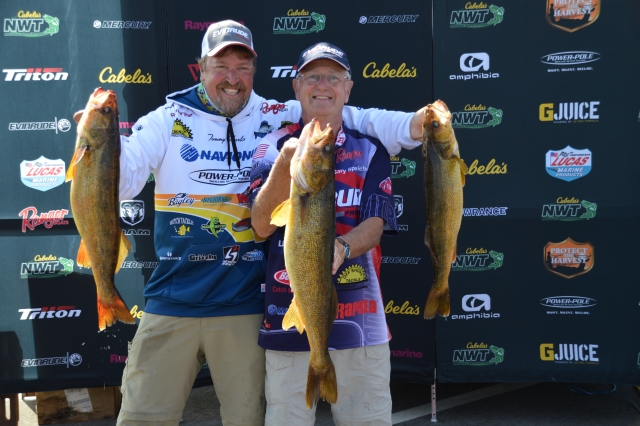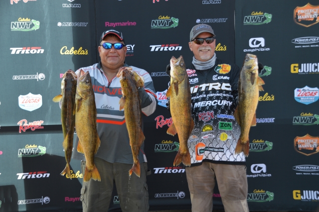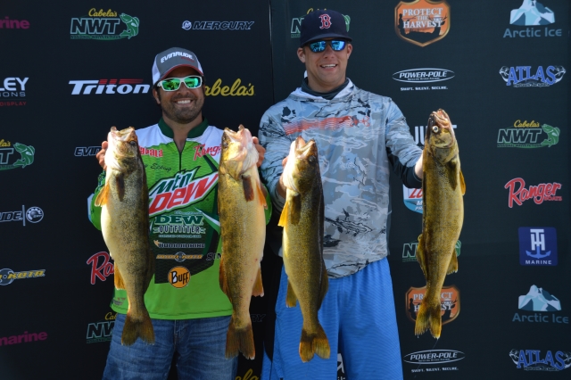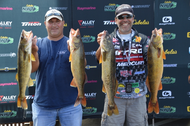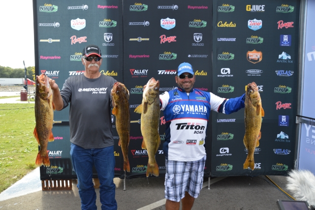 Location: Rhinelander | Sunny skies and moderate winds combined with an incoming front made for some large bags of walleyes being weighed today at the National Walleye Tour's final stop of the 2017 season. As anglers stated before the tournament, fish were caught on about every tactic in the tackle box. With a major weather change on the way tonight and tomorrow, it is still anybody's ball game.