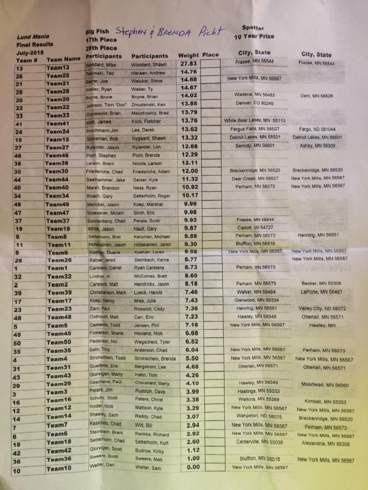 Location: Rhinelander | Shawn and Mike Woodard won the Lund Maina Tournament going away with over 20 pounds. They drove home with a certificate for a rigged 1675 Impact worth over $26000.00 Ted Takasaki and his partner took second about 6 pounds back. Steve Weickert and Joe Balcer took third. Steve and Brenda Picht took home the $500.00 check for the big fish of the event. Stand by after the WalleyeFIRST team travels back to the home office for a full report! Attachments ---------------- DSC_7326.jpg (54KB - 620 downloads) DSC_7351.jpg (62KB - 611 downloads) DSC_7356.jpg (67KB - 643 downloads) DSC_7111.jpg (69KB - 654 downloads) DSC_7233.jpg (55KB - 637 downloads) 36678543_2540190166006573_5529039342921580544_n.jpg (107KB - 684 downloads) | ||