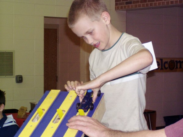 Member Posts: 376 Location: Menominee MI, In Da UP Eh? | Today was Jeff's ( My oldest boy )second Pinewood Derby for Cub Scouts. Last year Jeff's car looked great, but ran so-so. He had a great time but wished he did better. This year, well, it was different. In the competition for the Bears Den(Jeff's age group) Jeff came in second once. But he came in first in 5 of the six heats! 5 and 1!!! Jeff won the first place for his division, and advanced to the finals. Man was he happy! (Me too by the way, I couldn't have been happier myself! Proud Papa? Me? Yup!) In the Finals there were 22 heats among 12 boys. None of the boys raced in them all as it was set up so each boy raced each other boy at least once. Jeff never got another second place race. He won every one of his races in the finals! Undefeated in the finals, and Jeff was the only boy to do that!!!! Jeff smoked em all! Man, if you thought I was a proud Papa before...... I was like about to bust! The funny part is, when they were doing the awards for the finals, Jeff had to be called 2x for his Championship Award as he didn't even have a clue that he was the one that beat them all! More than all that, I was so proud that he was a very good winner and Jeff felt really bad for one of his buddies who never won a race. (Actually the boy finished dead last in the whole thing. losing every one of his races.) I could not have been prouder of him, and the pride for his winning, our car design and hard work was paled in comparison for what type of competitor Jeff was. Here are the pics, or at least some of them...Jeff's Car is the one on the right in the picture of the 3 at the starting Gate. Jason ( My other son )was also a very big helper in building the car as well as behaving so well while at the race. I could not have been prouder of him either! Navy Blue and Yellow...it work's for the Blue Angels and it works for us.... Attachments ---------------- Setting car race 1.jpg (42KB - 96 downloads) Setting car in finals.jpg (44KB - 98 downloads) Our Team Champions.jpg (45KB - 106 downloads) Top 3 in Pack.jpg (57KB - 106 downloads) stiff comp in finals.jpg (45KB - 106 downloads) | ||