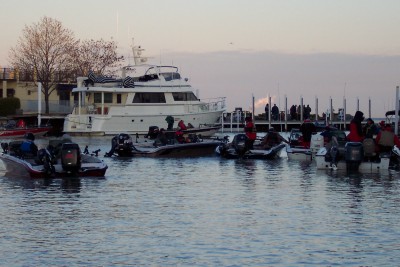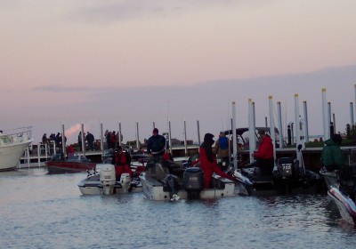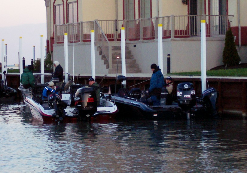 Member Posts: 3899 | Hi Guys! Wow, what a great feeling to have so much support and well wishes behind me! I really appreciate it, and I know it helped. I had a great time, both prefishing, and during the tournament. I was torn between hoping for the blow day on Thursday, and wanting to fish it. I know a couple pros that were within striking distance, and it would have been good for them to have the shot. But, this is Lake Erie, and we played the cards we were dealt. I was prefishing with Mark Keenan all week, and I really learn alot when fishing with him. Prefishing started out great. Second fish in the boat was mine at a fat 29.5". We caught 13 fish the first day, and the top 5 would have went an easy 35 lbs. The bite was slower than last year, but we caught some pretty decent fish all week. Sunday, we only caught 2, and they were 6 lb'ers. We fished different spots, and almost always caught fish. Some spots didn't hold the bigger fish we were looking for. Monday, we had a storm come through that had a period of very high winds. I would say they were approaching 50 MPH, and lasted for about 3 minutes, In that time, we saw horizontal rain from the tops of the waves, and some very high waves. I was a little shaken by that. It settled back down to an even 25 MPH, and we had a careful ride home. Tuesday, we didn't get out til 9, and fished til 1:00. Lots of weather moving through, and we had strong winds, big waves, and rain and sleet. Mark's prop was blowing out in the waves, so we got off to look for a different prop, and to get the motor lowered a hole. It took Jay only 10 minutes to fix us up, and we were off to get ready for the meeting. After my experiences of the past 3 years, I came into this tournament with a different frame of mind. I knew I was going to have fun prefishing, but I decided to actually have fun in the tournament, too. No matter what, I was going to try to just enjoy it, and not be so hung up on catching the big fish to make the cut. I was relaxed at the drawing, and when my name was called after Rick Franklin, my friends all said I finally got a good day one Pro. I'd heard of Rick, and was excited to be his day one co-angler. We met outside, exchanged numbers, and agreed he would pick me up at my motel on the way to the launch. After, I talked with RangerPat, Carl G, and a couple other guys I knew. I also met Jack Dunn, finally, and we talked for a bit. We had tried to hook up earlier, but I was just too busy with the guys I was out there with. Then, after a Ponderosa dinner, we headed back to get ready for the coming morning. Rick picked me up 15 minutes early, and I jumped, actually, pulled myself up, into his big red Chevy Diesel powered truck pulling his Merc 250 powered Crestliner with the checkered graphics on it. We got to the launch, and I backed him in. I got a good parking spot, and headed to jump into the boat, for what I hoped would be a fun day on the water. We motored over to the marina to pick out a dock to wait at, and I saw and wished good luck to a bunch of guys. Took a few pictures, and at 6:45, started pulling on my rain gear, and life jacket. I was ready. Rick told me what he needed me to do throughout the day to make things as smooth as possible, and I went through my mental checklist 100 times. We talked about our presentaion, where we were going to fish, and what we needed to do when we made a move. I was ready, and then they delayed the start for 15 minutes! It seems as though not all the boats were launched. So, as we waited for the start, we went over stuff again. We were boat 66, and once the first boats finally started, we found the boat we were to follow. A couple waves and good wishes from people, a tug on the hood straps, and we were passing the starter's boat, Old Glory waving in the wind. With a roar of the 250, we were off towards Kelly's Island, and hopefully a great day! The ride was a little rough at first, as the water was churned up from the 65 boats that started before us. But as the field spread on the way to their own spots, we found the water fairly calm, and Rick opened her up. That 250 XS really makes a distinct sound, especially approaching 6000 RPM! It seemed we reached our first spot in minutes. Getting there, we went about getting our lines set, and while I put out the drift socks, Rick was setting the speed on the kicker. We were marking lots of fish, but it took over an hour to get that first fish to hit our offerings. Rick said he was going to change his inside line a lot, hoping to find a combination that the fish would like. Things were going just fine, as we had a good fish hit a short while later on our second pass, and we put about a 7 in the box. But only after I got to show Rick a little trick I learned from Mark. He thought it was very cool, and we laughed at how simple it was, and that he had never seen it before. We talked about our work, family, where we grew up, where and why we moved, other tournaments we fished, muskies, websites, dogs, hunting, and my kids. Time was flying, we were having a great time, ansd soon, it was 10:30, and we still had only 1 fish in the box! Time to make a move, this time to some deeper water, where Rick had pulled some good fish during prefish. We made one pass and had two hits, but we lost them. The next pass we took a 4. The next two passes yielded nothing, so we moved again. Upon reaching that spot, the Horseshoe, I told Rick our luck was about to change for the better, as I had a sure-fire method I learned from GregM. Reaching into my pocket, I pulled a handful of change, and selected a shiny Quarter, Dime, Nickle, and Penny. I faced the bow, said a prayer to the Muskie gods, and tossed the 41 cents over my shoulder into Lake Erie. I am not kidding here. Less than a minute later, a board went back, and I reeled in a 6! A couple more passes there produced nothing, and it was time to move. We had about an hour to fish, as Rick wanted to leave 35 minutes to get back, so 