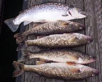 Member Posts: 88 Location: Oklahoma | Hi, everyone. I just got back from a fantastic fishing trip with some really great guys this weekend. Myself along with Ron and Danny and several others caught over 140 smallmouth bass and 11 walleye. Also landed a beautiful Brown Trout as well. We ran crankbaits on planer boards and down riggers in apprx. 40' of water 130' back (PB). Weather was outstanding, a little stormy, but overall very nice. All of the smallmouths were very healthy in size, and 20 of them were 20" in lenght or more. Many were over 6 pounds! My nicest walleye was 8.25 pounds and 28 1/2" long! I understand that it is a little early yet for walleye in this area, so I feel lucky to have caught what we did. I had a really great time, and the fishing was terrific. Next time I go to Erie, PA, I will certainly do this again! Attachments ---------------- eriefish1.JPG (35KB - 140 downloads) eriefish2.JPG (75KB - 141 downloads) eriesmallie1.JPG (57KB - 132 downloads) eriewalleye1.JPG (51KB - 125 downloads) | ||