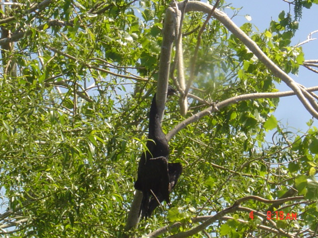 | That's a warning to all cormorants - come near the Winnebago Chain and you'll find yourself hanging from a tree! Hehehe Naw, just a sight Greg Karch and I soaked in while casting cranks along a rocky area. | |||