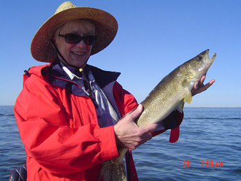 I spent 3 days on Winni with mixed results...lot's of perch & northerns. The walleyes would turn off and on throughout the day. Most of the fish were coming from less than 10' of water, including this 26" fish caught by Sue Maybell of Kansas City.
