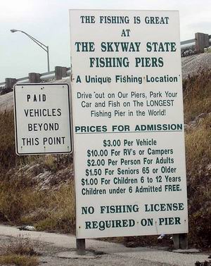 Member Posts: 157 Location: YouTube.com/LyubakaVideo Instagram @LyubakaVideo | Hey all fishing fanatics. Not exactly positive on what is in store down here, but nevermind another day will come and the sun will shine again. Speaking of which here are some photos from Sunshine Skyway South Fishing pier. Enjoy ... and yes I only hooked into baitfish ;) Attachments ---------------- DSCN2141.jpg (34KB - 95 downloads) DSCN2143.jpg (35KB - 87 downloads) DSCN2144.jpg (17KB - 85 downloads) DSCN2145.jpg (21KB - 84 downloads) DSCN2147.jpg (27KB - 81 downloads) DSCN2148.jpg (35KB - 72 downloads) DSCN2149.jpg (24KB - 73 downloads) DSCN2150.jpg (25KB - 92 downloads) DSCN2151.jpg (24KB - 87 downloads) | ||
