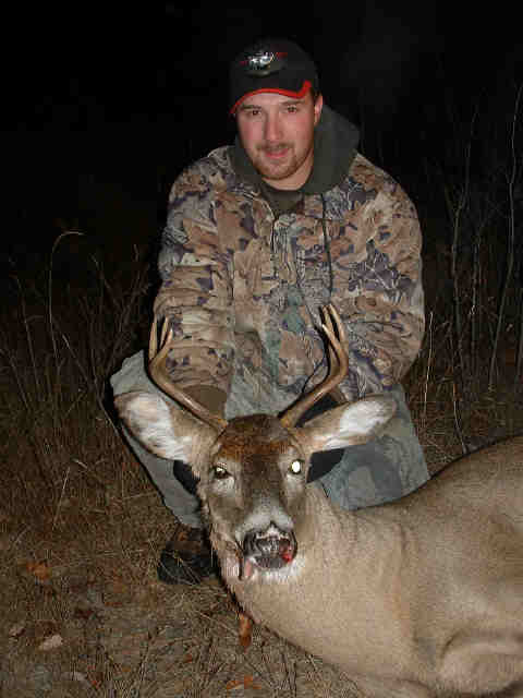 Member Posts: 714 | The Minnesota 3B season started good today too! Opened at 6:48 for me, and was over about 7:19. Didn't take the camera in the field today because it was drizzling out. Digitals and water don't go well together. 10 points 18.5" spread There is a 14 pointer running around where I hunt with 2 matching drop tines, but he didn't show himself today, and I wasn't willing to pass this one up! Edited by JLDII 11/21/2004 8:02 AM Attachments ---------------- DCP_0193.JPG (108KB - 111 downloads) | ||
