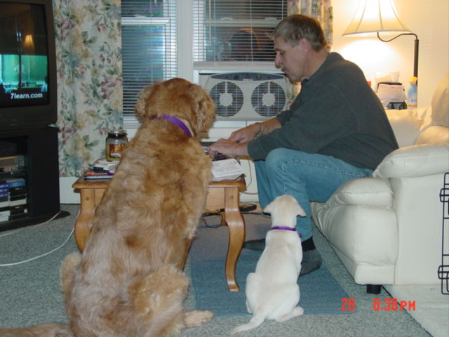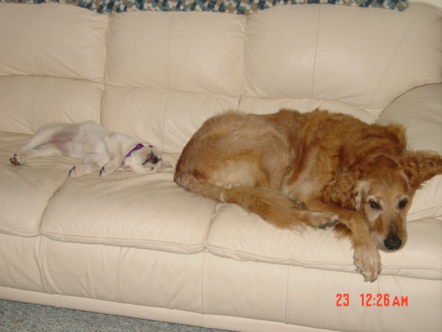 Member Posts: 389 | Thanks Gary! Rex will have another playmate too...Jack has a little sister named Jill now. She's a 13 week old yelo lab. About the size Rex was the first time he met Jack. Jack didn't like giving up his only child status, but once he resigned himself to the fact that Jill was going to be staying, they are inseparable now. Jack's hanging in there and doing well since he had both his back knees operated on. He had torn the cruciates in both knees, and now they are held together with 150# mono...poor dog. He's happy though, so that's all that matters. Hope to see you and Mary this year. We missed not getting your yearly Christmas family picture card from you guys this year, but I know how busy you are right now, so we understand. I wanted to see how big Rex The Wonder Dog had gotten since I last saw him. Happy Holidays and best wishes for a very successful 2005 season Gary! Hope to see you on the road! Juls Attachments ---------------- we are sitting pretty_feed us.JPG (60KB - 103 downloads) Jill sleeping on Ricks feet_1.JPG (61KB - 104 downloads) Jack and Jill on couch_2.JPG (58KB - 106 downloads) | ||