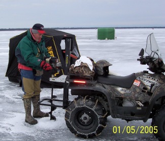 Location: Gladstone, Michigan 49837 | after getting much of the equipment ready along with just everyday things took a ride out on the ice south of Gladstone drilling some holes and looking for some fish. Good friend and fishing buddy, Frank Schultz also was on the ice with me today and we shared the shanty working water depths in the 30 foot range and shallow.