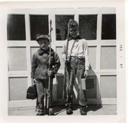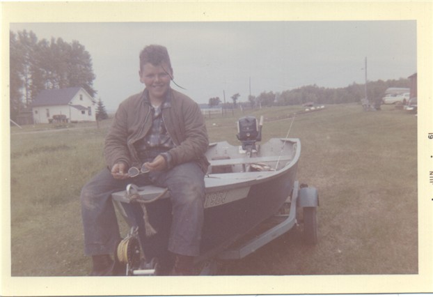 Member Posts: 378 Location: Omro,Wi. | Believe it or not? Those are indeed some bamboo rods,with bent coat hangers taped to the pole for the line to rap around,and screw eye in the end.It is a classic pic to say the least,cork bobber,old lunch pail,corduroy pants,with turned up cuffs,hat with fold down ear muffs,and a flight jacket. Back in those days we used the poles for pool cues,in the winter,and when it was real cold we carried two baked potatoes in our pockets,to scholl,[a four mile walk] to keep our hands warm,then ate them for lunch!This was taken in February of 1957.Seems we have come far since then.I won't tell you that I remember the touch tone phones,color tv,microwaves,and digital watches coming out till later. | ||