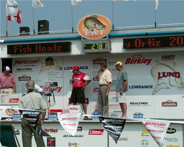 I'm feeling better and better about my (who's gonna win) prediction I made on another board. I had a premonition about Mike Gofron and Put Gary to place or show. Mike was in first and both Gary and His son Chase Parsons were close behind when I left, with only the tail end of the 3rd flight yet top weigh in. I talked to Gary, Chase and Kieth Kavejeck for a while, and seems nobody they talked to or know of was pulling plastics, so my plastics hunch might be off-base some. OH....and that guy in the white shirt taking a picture or Gofron is Steve Worral. It was very nice meeting you as well Steve.