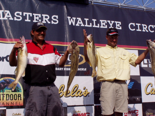 The second place team of Kevin Dahlhauser and David Koller. David is my brother and my Midwest Walleye Series Partner so I will be doing some seriouse rooting at the weigh in this afternoon look forward to seing any WF,s there I will be whereing a shirt with a red white and blue bass on it that says Fishing an American Tradition come on over and say HI.