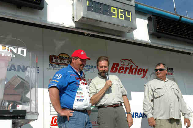 Location: Rhinelander | Aaron Abeurrea held on today to take a slim lead into day three of the WPT Lund/Outdoor Channel Sault Ste Marie event. The weather should hold with the storms out west taking just enough time to get here to probably have no effect. Jim Muzynoski is right on Aaron's tail just a half pound back. Angler of the Year standings are heating up for tomorrow with all Mike Gofron, Mark Brumbaugh, and Mark Martin weiging excellent two day totals. There definitely was a shift in position today, but tomorrow's weights will tell the story. Angler of the Year honors are worth $25000, with an additional $10000 in Mercury Marine contingency money if the 2005 PWT Angler of the Year runs a Mercury Outboard. Attachments ---------------- Aaron holds on the Day Two Lead.jpg (23KB - 127 downloads) Mike Gofron makes a move for the Angler of the Year title on Day Two.jpg (24KB - 119 downloads) Bill Ortiz has a great day two, holding in position to take his best shot.jpg (23KB - 128 downloads) Mark Brumbaugh,AOY leader on Day one, looks on as the scales tell the story.jpg (24KB - 119 downloads) | ||||