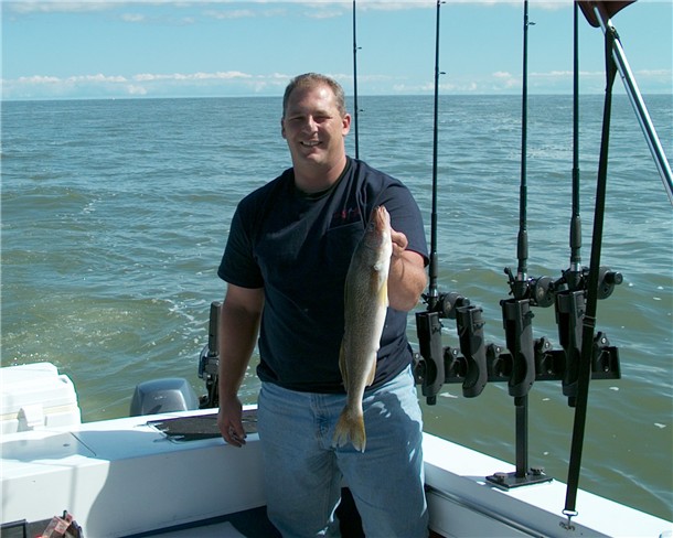 Location: Essexville, MI./Saginaw Bay. | Half day charter. Started high in the 48's and trolled with the waves towards the same spot I caught fish yesterday. Never had a touch even though I marked a TON of fish all the way. A few guys in the Black Hole we shouting like little kids on the radio about the slab perch they were catching. I could tell they had something going, as the Big yachts that usually fish the channel area were packed into the Hole with the smaller boats. Finally after reaching the same spot as yesterday, we boated a nice 4 pounder. Managed 4 more walleyes with 2 being keepers. All 100 Back with the rattle tots. I must say it again. I've never marked so many fish in my life as I have the last 2 days. Report again tomorrow after my charter.