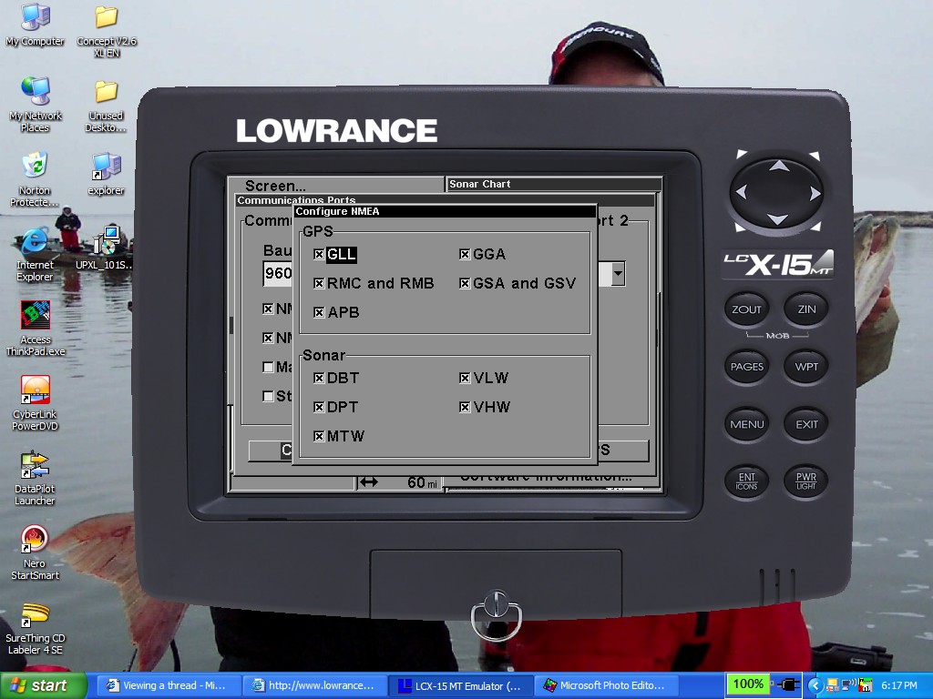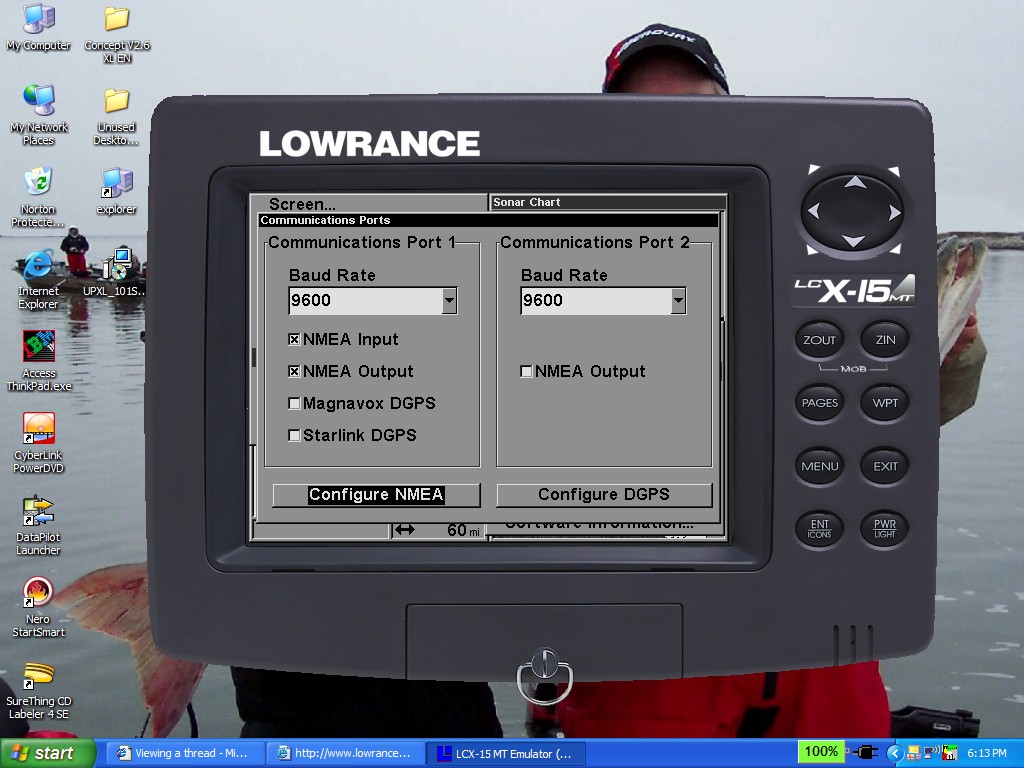 Then, get into system setup, and enter the communication setup. Turn on NMEA input and NMEA output on Com port 1. Check to make sure the NMEA configuration screen has all the items checked. Set the baud rate to 9600. Do this on BOTH X-15's. That should be it.