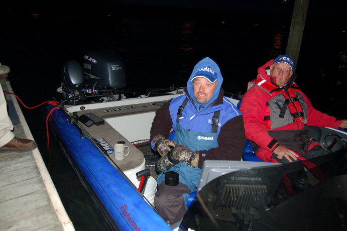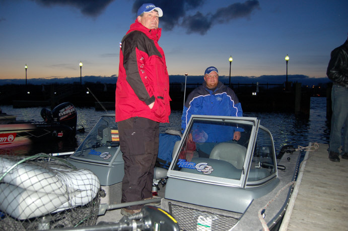 Good morning! The final day of the Detroit River FLW Walleye Tour tournament dawned brisk and breezy, with a moderate North wind and temps in the low thirties. The Top Ten Pros and Co Anglers were in excellent spirits as the sun broke the horizon, with the only concern being the WMT event launching 5 miles away. That should still give the FLW Pros a several minute head start to get to thier early morning bite. General consensus was jigging early and handlining later would produce the best baskets. Aaron Hogland said, " I'm going to go down swinging, no matter what! I have alot of confidence in my fish being there. I found a pod of really good fish; I think they will still be there." Polar Kraft/Evinrude Pro Bill Ortiz was also confident, saying he was really pleased with his Co Angler draw and his confidence was high he would put some big 'eyes in the net.