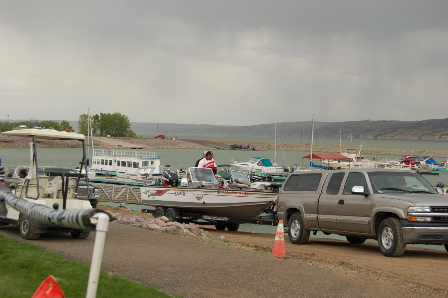 Location: Rhinelander | Coverage begins this morning on the Missouri River in Chamberlain, South Dakota. 60 of the worlds top Walleye Pros teamed with a Co Angler will hit the water tomorrow morning at 8AM launching from Cedar Shores Resort. Stay with WalleyeFIRST for the best tournament coverage on the web. A cold front blew through yesterday evening, bringing west winds and cooler temps. Watch for the morning report and photos by 9 AM on the 10th. It snowewd in the Black Hills last night. This event runs from 8 to 5 on the water, so the weigh in will be later than usual; more on this during the morning report. Winds are supposed to be 20 to 30 MPH today, but Pro John Bergsma didn't seem to be too concerned. "I practiced for big winds, I'm trolling pretty fast," he told me this morning. The bite has been fantastic, according to several of the Pros I spoke to this morning. | ||