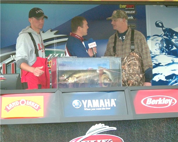 I also liked very much the new "Water weigh-in" procedure they had at this event. The walleyes stayed calm and healthy (at least to the naked eye) as they made their way down the line into the final weigh-in tank on stage.