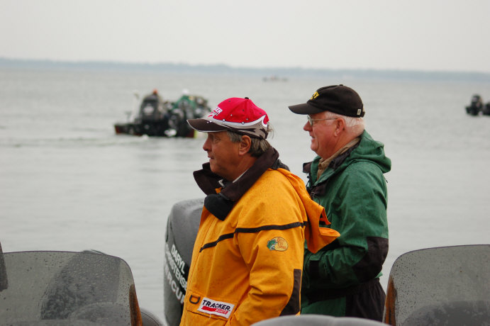 Member Posts: 1382 | Crestliner/Mercury Pro Bruce Samson has 5 pounds of leeches onboard. He's ready. We have some wind today which Bruce is happy with. The rain and early strorms this morning didn't seem to be any problem at all. Watch for a WalleyeFIRST video interview with Mr. Samson later this morning. Tracker/Mercury Pro Daryl Christensen has his spoons tied up. He's casting spoons and controlled drift 'hopping' them back to the boat, and is a bit concerned about getting a solid hook set in the increased winds later today. He said he may go to braided line if he starts to have trouble getting his fish pinned up. Daryl told WalleyeFIRST this morning he and 'Doc' Samson are in a dead heat going into the day, and unless they both totally bomb it's between them for first and second. He is confident, has plenty of room, and is fishing much shallower than the rest of the field, so anyone entering the area he's fishing isn't likely to get too close. Yesterday, he filled out his limit working sand breaks and fished most of the day in 8 to 13'. For awhile on day one, he even trolled cranks along the breaks looking for an upgrade. The weather looks like occasional showers and storms, with some clearing in between. Warm temps and windy conditions are the rule. This is going to be a shootout. Attachments ---------------- DSC_0009.JPG (54KB - 140 downloads) DSC_0016.JPG (44KB - 119 downloads) DSC_0040.JPG (80KB - 140 downloads) DSC_0044.JPG (89KB - 125 downloads) DSC_0078.JPG (27KB - 137 downloads) DSC_0019.JPG (49KB - 136 downloads) | ||