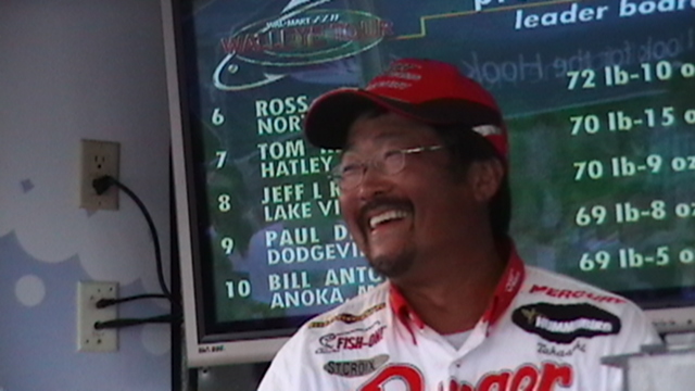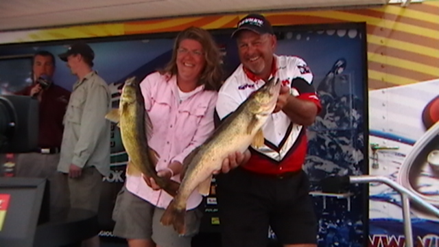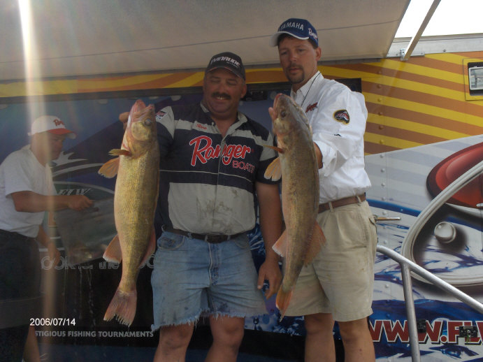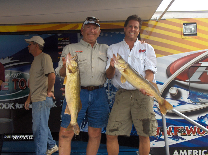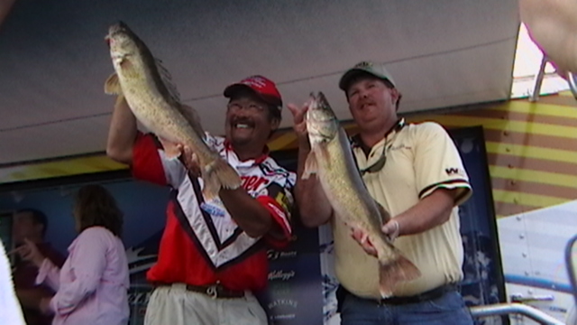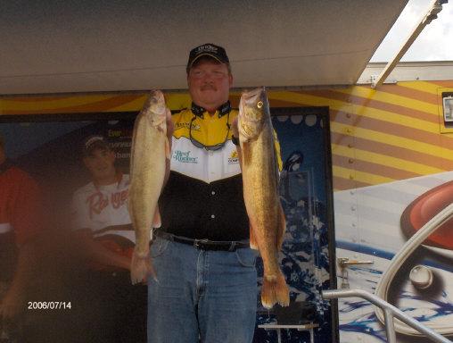Member Posts: 145 | Ted Takasaki held on to his lead by weighing 30# of fish today, a day that saw lots of movement on the Pro and Co-Angler side. Almost everyone brought good bags to the scale, and the techniques being used are all pretty much the same. The difference again was getting the big fish to come up and eat, with anglers talking about trolling spinner rigs and crawlers as little as 3 feet deep. 3-10 feet seemed to be the magic zone, but the zone changed throughout the day as clouds rolled through in the early morning and then again late in the afternoon, with some guys reporting catching 3-5 fish in the last hour and a half. Bill Ortiz landed the biggest bag of the top 10 finishers with a weight of 33#-12oz. Mark Schuitema weighed the heaviest limit of 35#-1 oz that netted him 24th place after starting the day in 78th. Kristine Szczech jumped into the lead on the co-angler side, that is going to be a tight race with the top 4 places all within 3# of each other. The Top Ten going into tomorrow...... PROS 1-Ted Takasaki-33-8,31-3,30.0 for 94#-11 oz 2-Wayne Butz -29-6,26-1,25-10 for 81#-1oz 3-Dean Arnoldussen- 37-14,18-1,20-6 for 76#-5oz 4-Bill Ortiz- 15-12,26-9,33-12 for 76#-1oz 5-Ken Schoenecker- 25-4,28-2,21-8 for 74#-14oz 6-Ross Grothe- 22-14,25-3,24-9 for 72#10oz 7-John Schneider- 25-3,31-0,15-3 for 71#-6oz 8-Tom Keenan-20-4,28-6,22-5 for 70#15oz 9-Jeff Ryan- 31-10,23-10,15-5 for 70#-9oz 10-Paul Devoss- 36-3,14-5,19-0 for 69#-8oz Co-Anglers 1- Kristine Szczech- 23-11,34-9,22-10 for 80#14oz 2-Chad Wertepny-36-3,18-2,25-10 for 79#15oz 3-Todd Mueller-31-10,25-15,21-0 for 78#9oz 4-Joshua Northagen-23-11,31-8,23-6 for 78#-9oz 5-Flo Swank-30-5,31-0,14-6 for 75#11oz 6-James Mc Cartin-30-13,26-0,18-0 for74#-13oz 7-Darrell Martin-26-3,15-3,32-9 for73#-15oz 8-Charles Dahl-19-6,27-6,24-14 for71#10oz 9-Randy Ludwig-33-8,15-5,21-1 for69#14oz 10-Randy Reek-31-8,25-15,12-7 for69#14oz Those twenty anglers will vie for the big money tomorrow, a day forecast to break heat records with highs in the mid 90's and little or no wind. I'll get some day 3 photos up as soon as I get them loaded. I thought you would want to know who finished where in the competition to make the Top Ten. Later, Beav Some pics of Ted T smiling like The Cheshire Cat and Kristine Szczech. I'll post more pics later and will have the day 3 album for you to look at. Some great shots today...if you like looking at big walleyes. Edited by Beaver 7/14/2006 6:32 PM Attachments ---------------- IMGA0168.JPG (110KB - 71 downloads) IMGA0174.JPG (109KB - 71 downloads) IMGA0182.JPG (108KB - 71 downloads) | ||