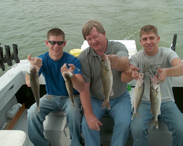 This first picture below is of my charter clients I had today. According to many of the MWT boys coming in off the Saginaw Bay from pre-fishing today for the tournament this weekend, we did better then most today in some tough-bite conditions. We boated 12 walleyes and kept 5 for the 1/2 day effort.