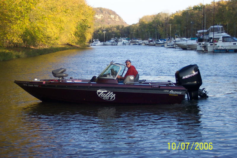 Member Posts: 1991 | Incredible, what a differnce between this boat and my last boat. Went down to pool4/Pepin today and the wind was howling out of the s/sw coming up Pepin, the last time I did this in my Mr Pike I was soaked and beat up. Well I launched at Colvill and went to do some trolling at the head of he lakes, I thought I would take a spin down to Point/No point and it was rolling, this boat rides SMOOTH and dry and I was moving pretty good, my son was with and he was amazed, no rain suit needed. Went and opened it up on the river coming out of the no wake in Red Wing, there was one of those hot shot cigerette boats paralling me, I cranked up th OPTI, and trimmed it out 59 mph up stream, he had all he could do to pass me. By the way no walleye smell in the boat today, just a lowly sheephead Attachments ---------------- TUFFY PICS 016.jpg (102KB - 267 downloads) TUFFY PICS 010 (2).jpg (92KB - 242 downloads) | ||