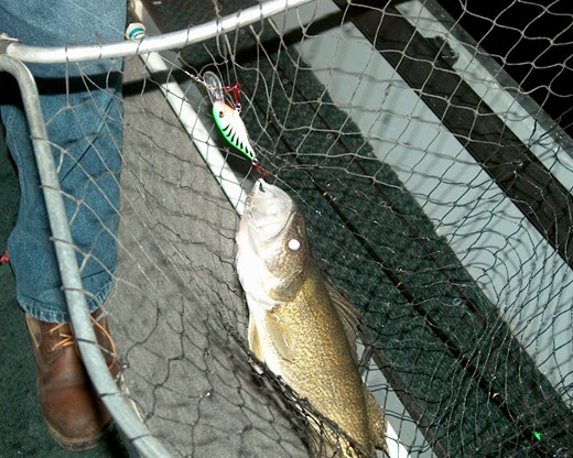 | We also fish for walleye at night from the bank. The river we fish has very clear water, and at night, walleye will move into the shallows to feed. Essentially, we are sight fishing with cranks. Lots of fun! | |||